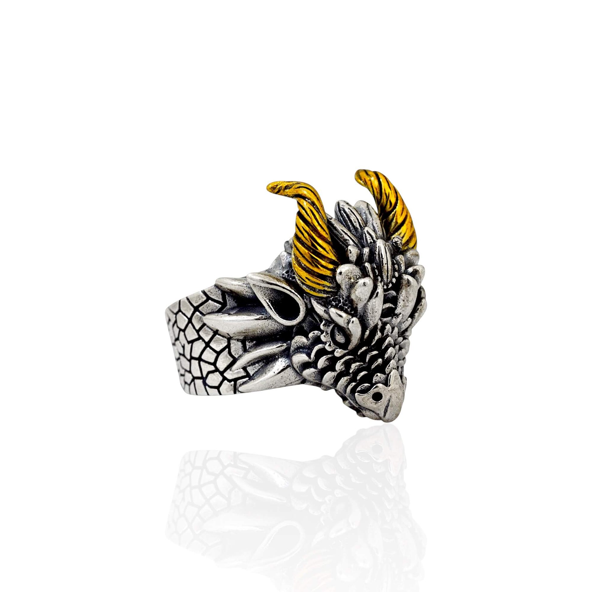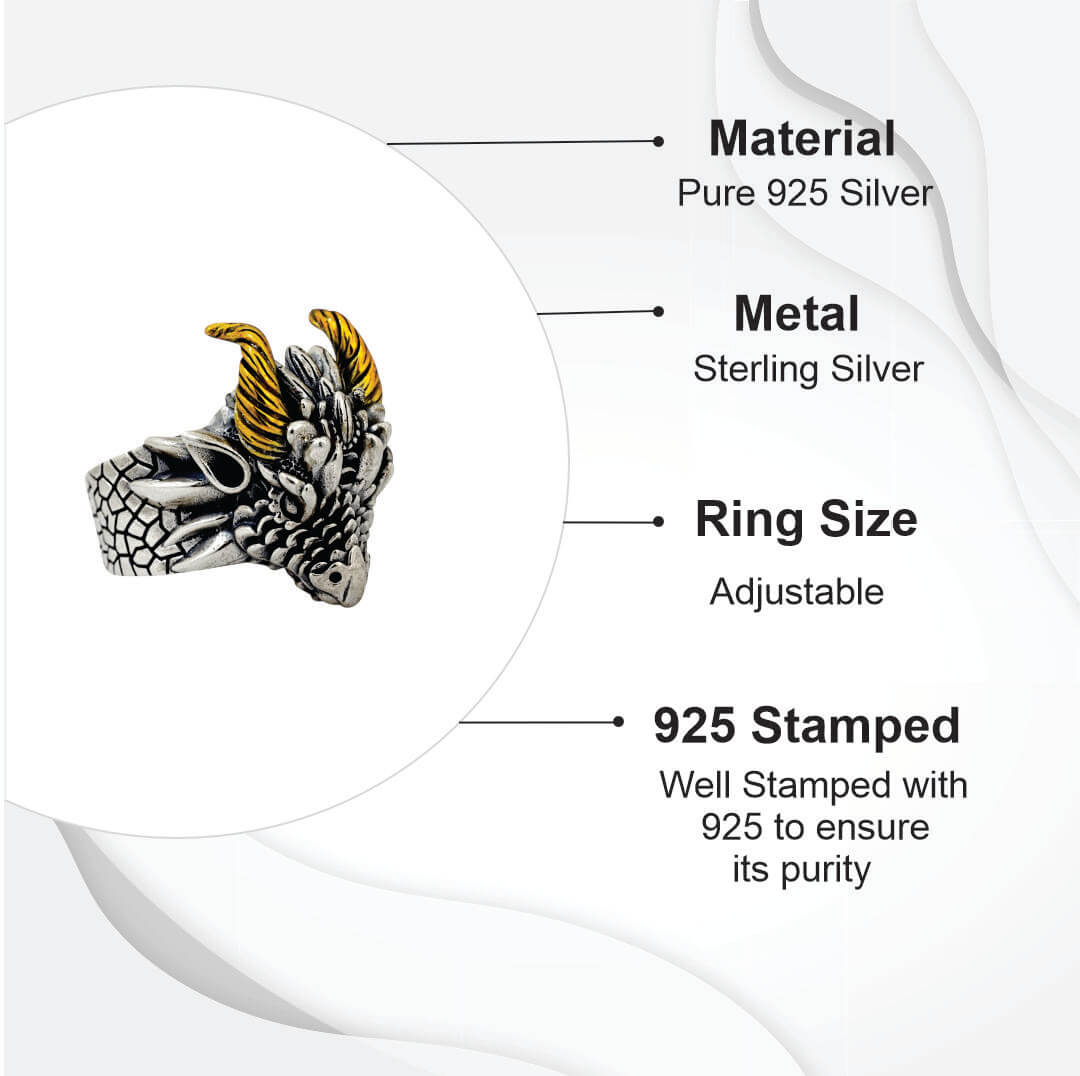 Azita 925 Sterling Silver Dragon Face Ring for Men and Boys with Certificate of Authenticity and 925 Stamp