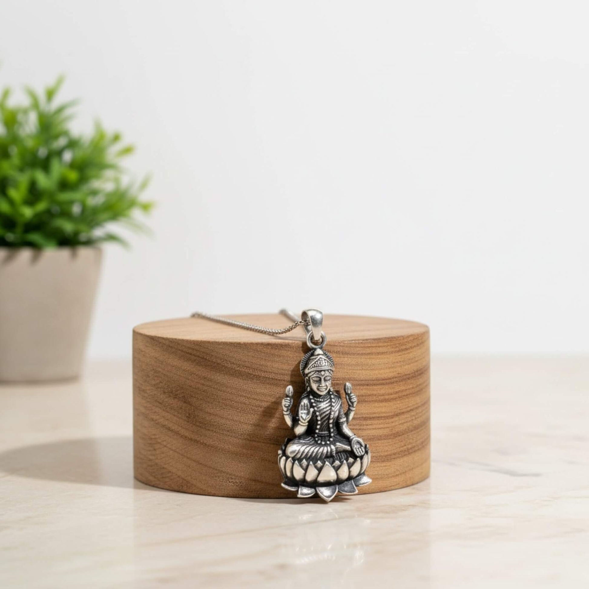 Azita 925 Sterling Silver Goddess Lakshmi Maa Pendant for Men and Women| Without chain | With Certificate of Authenticity and BIS Hallmark.
