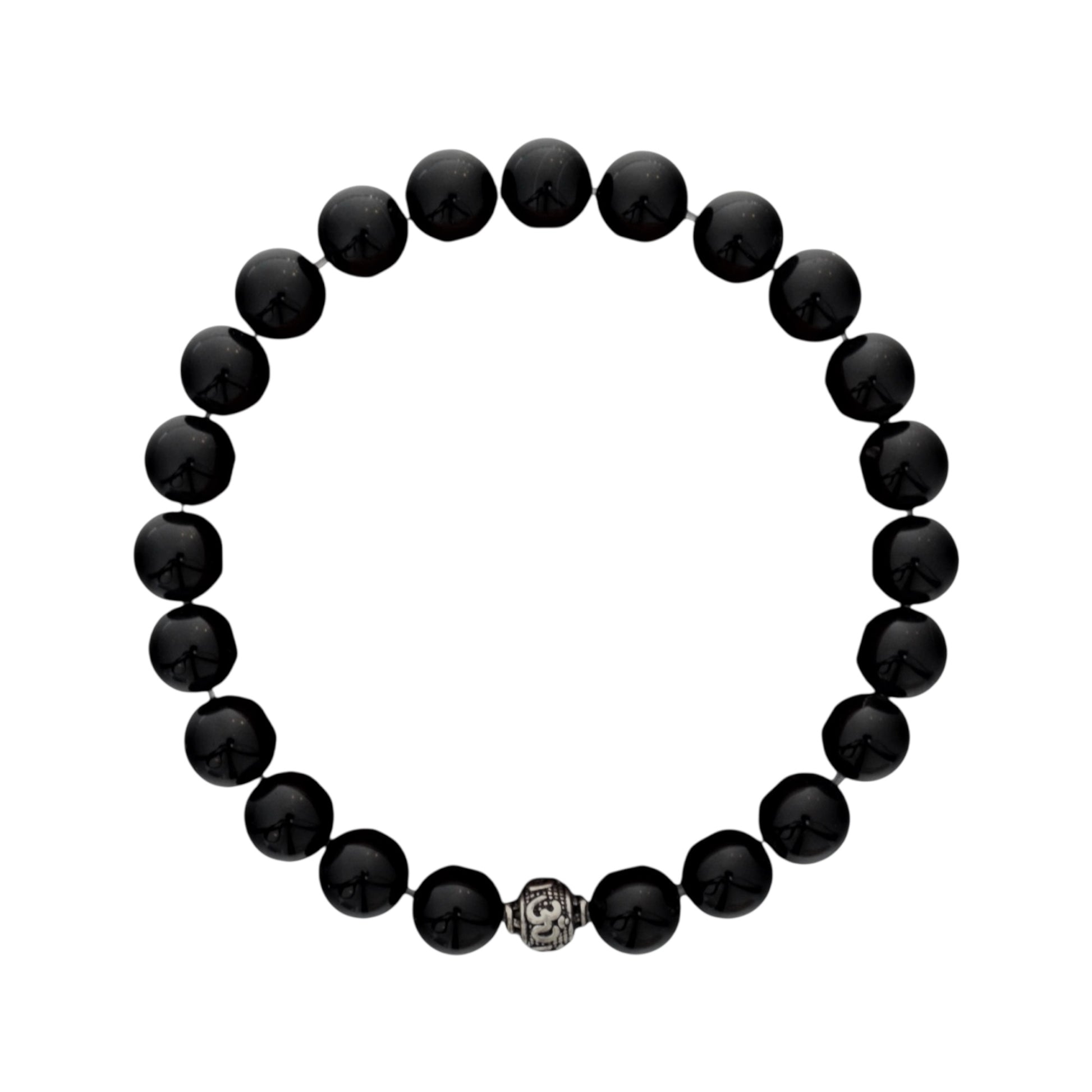 Azita 925 Sterling Silver Stretchable 8mm Black Onyx Bracelet for Men and Women with Om Silver Bead | with Certificate of Authenticity| Protection, Strength & Energy Balance