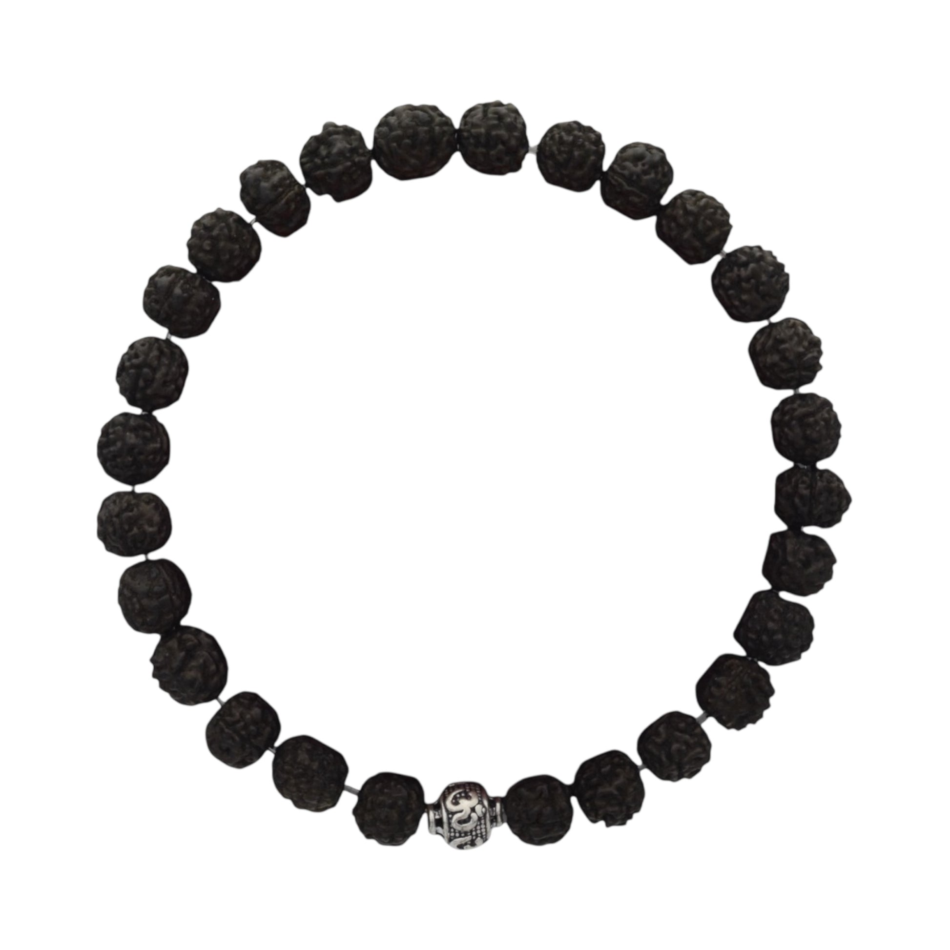 Azita 925 Sterling Silver Stretchable 8mm Black Rudraksh Bracelet for Men and Women with Om Silver Bead | with Certificate of Authenticity| Black Rudraksh known for promoting peace, protection, and spiritual growth